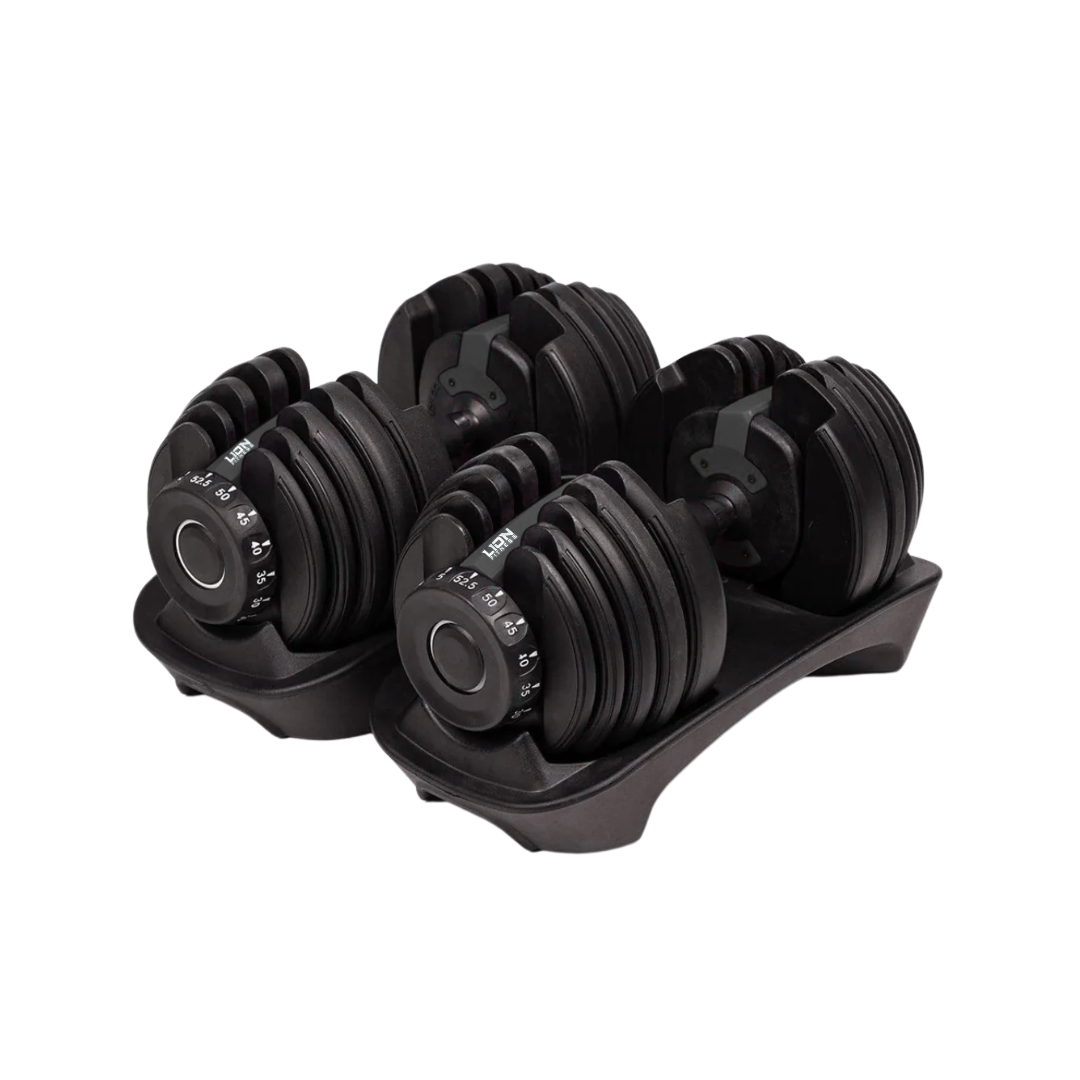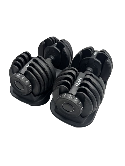 Découvrez nos haltères ajustables, offrant un poids variable de 5 à 52,5 livres. Un seul équipement pour des possibilités infinies dans votre entraînement. Compactes, pratiques et polyvalents, ces haltères s'adaptent à tous les niveaux, vous permettant d'atteindre vos objectifs de remise en forme sans encombrer votre espace.