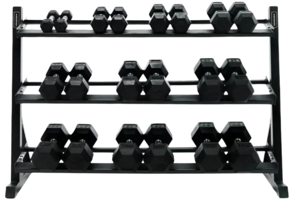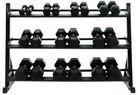 - 5-7.5-10-12.5-15-17.5-20-25-30-35-40-45-50 lbs in pairs + 3-tier rack